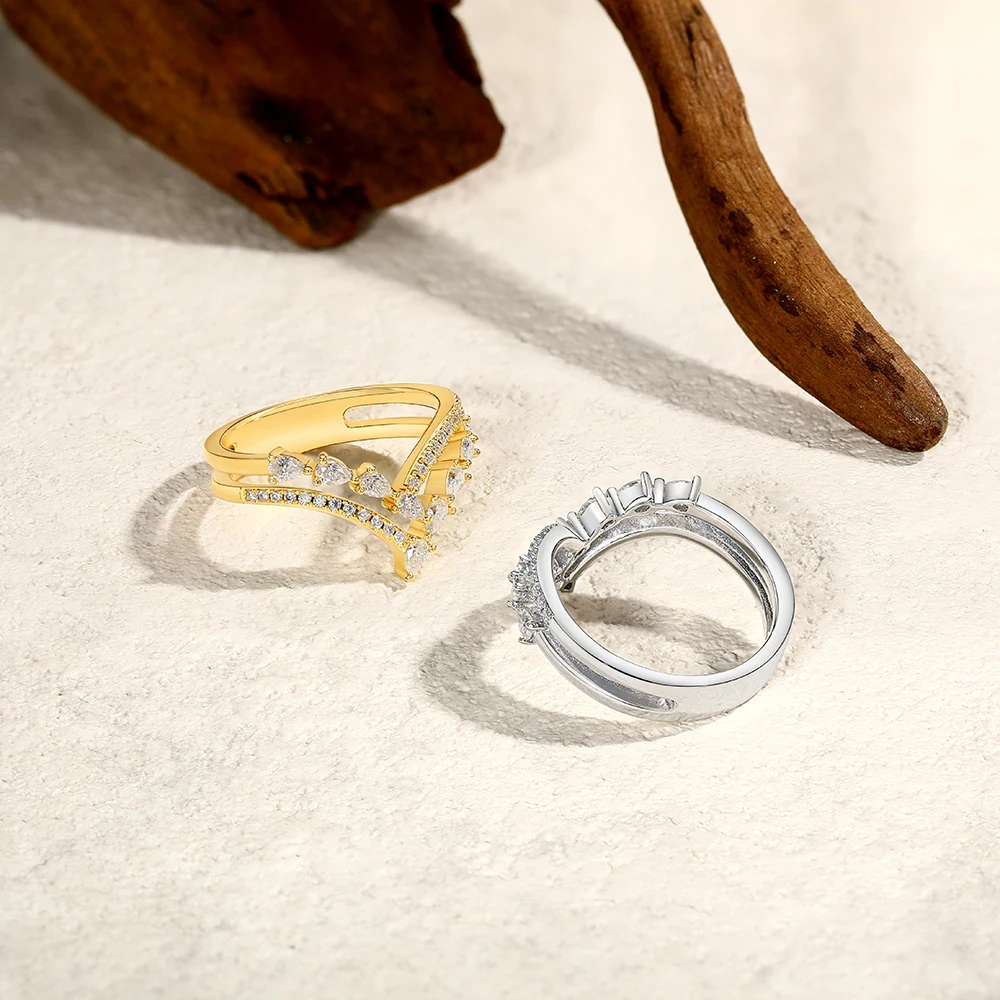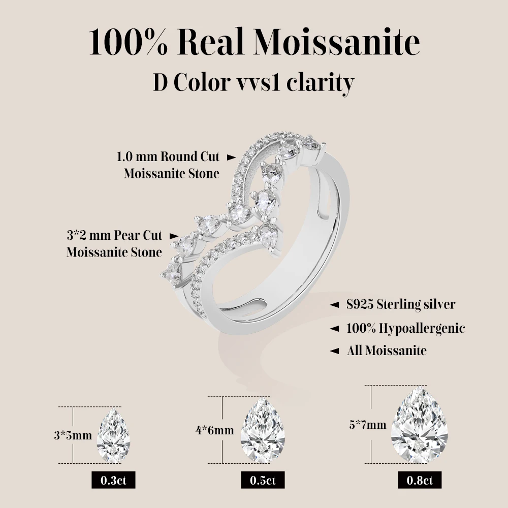 ATTAGEMS Double Cross Design Band Moissanit Rings for Women DVVS1 Grade 3*2mm Pear Cut 925 Sterling Silver Engagement Jewelry