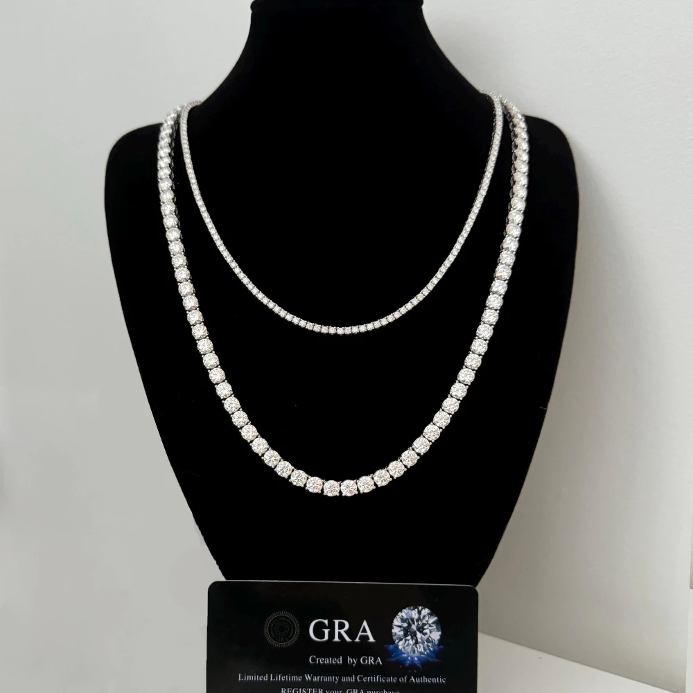 FEOBUR 3/4/5mm Real Moissanite Tennis Necklace for Women Men S925 Silver Certified Full Diamond Neck Chains Trendy Jewelry Gift