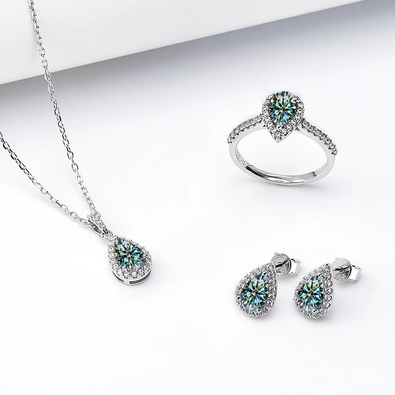 Jewelry Set Moissanite Jewelry Set Pear-shaped It Includes Ring Necklace & Earrings Suitable for Weddings and Ideal As A Gift